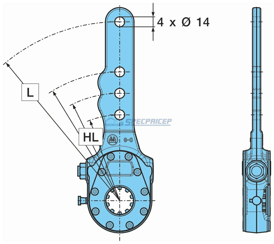 Длина рычага (HL) 120 / 150 / 180 = O 14 / L 250 = O 14